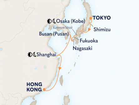 清水港は、日本で最も美しい港の一つとして知られ、晴れた日には富士山と三保松原の松林が絶景を描き出します(ともにユネスコ世界遺産)。温暖な気候と深い文化が魅力のこの港では、国宝の久能山東照宮や徳川家康ゆかりの静岡浅間神社など、歴史的名所が点在。美しい海岸線や茶畑、寺院が広がり、かつての茶の輸出港は今や日本一のマグロの水揚げ地としても有名です。地元の新鮮な海の幸を楽しむのもおすすめです。- 宿泊