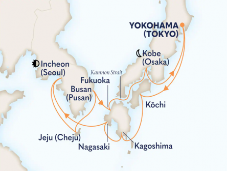 横浜港を出発し、日本の美しい海岸沿いを巡りながら、韓国の魅力的な都市へと足を運びます。ソウルでは一泊し、有名な宮殿や神社、伝統的な村をゆったりと探索する時間を楽しめます。歴史と文化が息づくこの旅は、忘れられない思い出になることでしょう。