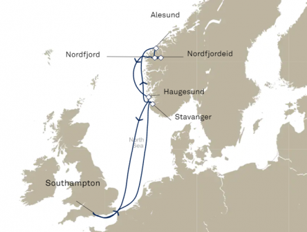 サウサンプトン発着のクルーズで、ノルウェーフィヨルドをご満喫ください。そびえ立つ滝や広大な山々の壮大な眺めを楽しみながら散策する時間はたっぷりあります。