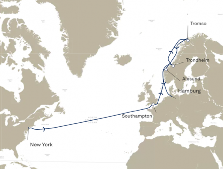 オーレスンのアールヌーボー建築。トロンハイムの木造家屋。トロムソでは、夜にオーロラが見えるかもしれません。ニューヨークからハンブルグに向かうこのクルーズで、いつまでも心に残る思い出をお作りください。