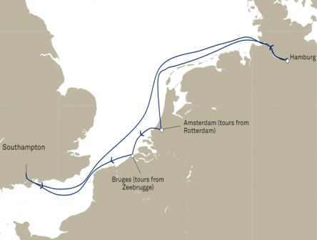 ハンブルグ、ロッテルダム、ブルージュ8日間クルーズ