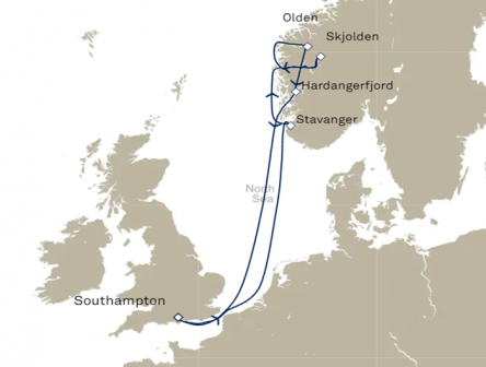 この7泊の航海には、世界で最も長く深いフィヨルドである、ノルウェーのハルダンゲルフィヨルドでのシーニッククルージングが含まれます。スタヴァンゲル、スキョルデン、オルデンにも寄港し、多くの美しい見どころがあります。