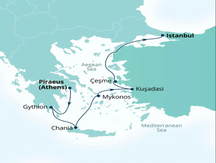 シーボーンクルーズで、ギリシャとトルコの美しい港町を巡る旅へ。アテネのピレウスを出発し、スパルタのギシオンやクレタ島のハニア、魅力あふれるミコノス島へと向かいます。エフェソスのクシャダスや歴史的なチェシュメも訪れ、イスタンブールの活気ある街並みで締めくくります。地中海の絶景と文化を体感し、特別な思い出を作りましょう。