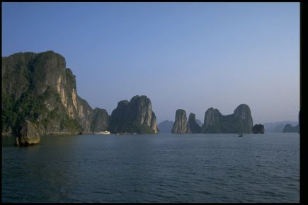 ベトナムの海岸沖には、絵画のような景色に点在するカルスト島々があります。これらの島々は、浸食によってユニークな形を成し、地元の人々には泳ぐ龍の背中を連想させます。漁師たちはサンパン船で生活し、島々を行き来しながら互いに取引を行い、近隣のハイフォンなどへも出かけて新鮮な魚を売ったり、物資を調達したりしています。- 宿泊