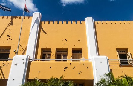 モンカダ兵営博物館では、1953年7月26日、26歳のフィデル・カストロは武装勢力を組織し、130名の仲間とともにモンカダ兵営に攻撃を行った出来事について学びます。攻撃者の80人以上が死亡、そしてフィデルは逮捕されました。裁判ではカトリック司教の仲裁で死刑は免れましたが、懲役15年が宣告され、投獄されました。- 宿泊