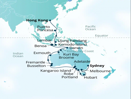 シーボーンクルーズで、オーストラリアとインドネシアの美しい海を巡る特別な旅へ。シドニーの華やかさから始まり、メルボルンやタスマニアの自然美、カンガルー島の野生動物、そしてエキゾチックなバリやコモド島まで、多彩な文化と景観が待っています。クルーズの合間に、リラックスした海の日々を楽しみながら、心に残る体験をお楽しみください。