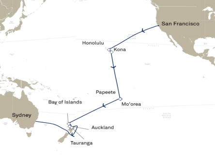 この25泊のクルーズでは、ハワイ、仏領ポリネシア、ニュージーランドへの寄港がお客様をお待ちしています。ホノルルのパールハーバーを訪れたり、モーレアのクック湾を散策したり、オークランドの象徴であるスカイタワーに登ったりするなどしてお楽しみいただけます。