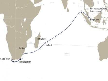 このクルーズでは、マレーシアの首都クアラルンプールを探訪でき、のどかなインド洋の島々を訪れ、アフリカ大陸に到着。ケープタウンではオーバーナイトをお楽しみいただけます。