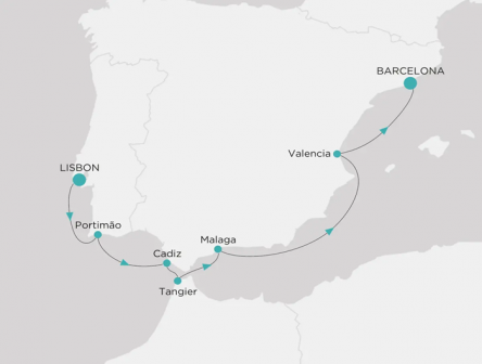 リスボンからバルセロナまでイベリア半島を巡る8泊の航海では、歴史と現代が調和した魅力を堪能できます。古い石畳の道を離れ、まずはアルガルヴェのポルティマンで美しいビーチを楽しんでリラックス。その後、スペインとの国境を越え、ヨーロッパ最古の都市カディスへ向かいます。さらにアフリカ大陸に近いモロッコのタンジールへと航海し、続いてマラガでピカソの名作を鑑賞。バレンシアで未来的な建築を満喫し、最後にバルセロナで航海を締めくくります。