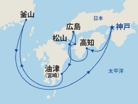 心地よい季節に、四国・広島・宮崎を経て韓国へと向かうコース。