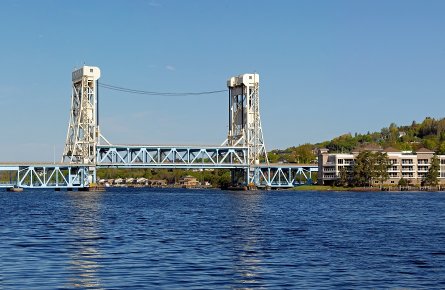 もともと、スーセントマリーは17世紀にイエズス会宣教師によって設立され、1812年に戦争が勃発されるまで1つの居住地でした。スペリオル湖からヒューロン湖に注ぐセントマリー川の落差7mの急流を避けるため、現在では、バイパスであるアメリカ側のスーセントマリー運河を通航します。現在は、全長約305mの大きさの貨物船さえも通航できる世界で最も忙しい運河となっています。