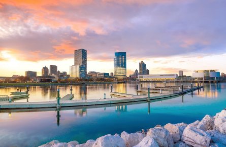 下船地ミルウォーキー朝、ミルウォーキー入港