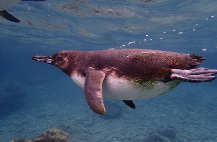 ガラパゴスペンギン/ガラパゴス観光イサベラ島のアルセド火山の麓のウルビーナ・ベイの海底が隆起した部分に沿ってのハイキングを楽しみます。ナチュラリストが、ウミガメやカラフルなリクイグアナなどの野生生物についてご案内します。