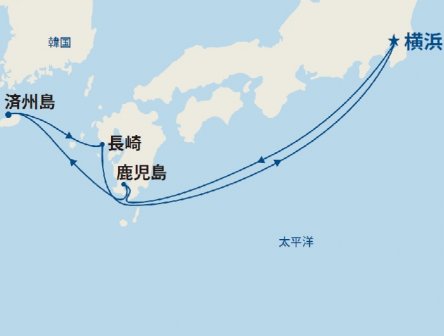 横浜を出港し済州島と長崎・鹿児島を訪れるコース