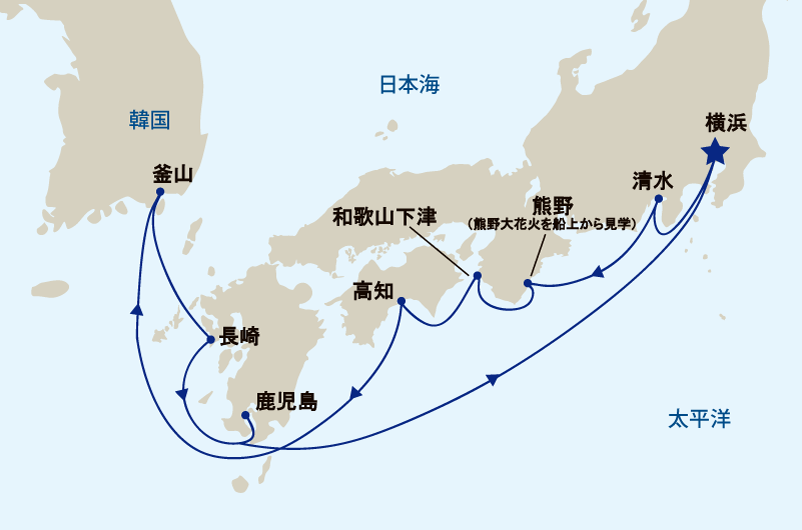 九州・韓国 夏休みクルーズ 8日熊野大花火と四国・九州と韓国 11日間