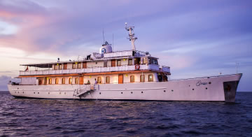 - 乗客定員32名のエボリューション号と18名定員のグレース号の2隻を使用、優雅なガラパゴスクルーズを演出します。全室海側の客室の他、船内にはレストランやラウンジ、ジャグジーが備わっています。