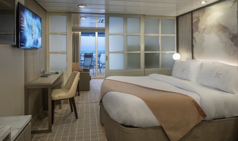 ※専用レストラン「ルミナ」、専用ラウンジ「ザ・リトリート」のご利用/バトラー(執事)サービス(荷解き・荷造りのお手伝い、レストラン・スパの予約等)/ウェルカムシャンパンボトル/毎日のミネラルウォーター/お部屋でのアップグレード朝食、ランチ、アフタヌーンティー、ディナーのご提供(リクエストに応じて)/24時間ルームサービス/無料のエスプレッソ、カプチーノ、フレッシュフルーツのお届け(リクエストに応じて/ミニバー内のドリンク無料/無料インターネット接続/有料レストランを無料で利用可能/アルコール飲み放題(プレミアムドリンクパッケージ)無料/ワインまたはスピリッツボトル2本無料/無料ランドリーサービス(1航海につき2回)/ワンランク上のバスアメニティ/選べる枕/厚手のバスローブ/スリッパ/テンダーボートへの優先乗船/優先チェックイン/優先下船/イブニングシックナイトの優先シアター席/靴磨きサービス/傘・双眼鏡の貸出