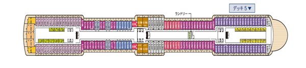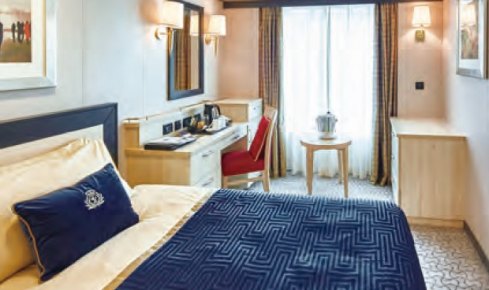 ■ご乗船時のウェルカム・ドリンク ■1日2回のスチュワード・サービス(ハウスキーピング) ■毎晩のターンダウン・サービス(お休み前のベッドメイキングサービス/チョコレート付き) ■エアコン ■サテライトTV(多言語の映画や音楽番組など) ■ダイレクトダイヤル式の電話 ■冷蔵庫 ■紅茶とコーヒーメーカー(湯沸かしポット) ■ヘアドライヤー ■セーフティ・ボックス(金庫) ■電源ソケット(交流220V:英国式3ピン/110V:2ピン) ■24時間のルームサービス ■ミネラルウォーター ■バスタオル・フェイスタオル ■プール用タオル ■バスローブ ■スリッパ ■シャンプー・コンディショナー ■固形石鹸 ■ボディーソープ ■ボディローション