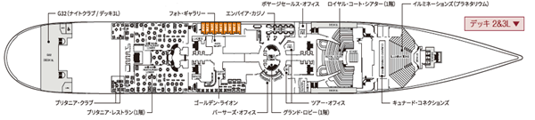 ●アール・デコ様式の美しい装飾で彩られた壮麗な船内は、洋上最大のボールルームや洋上最大級のプラネタリウムを擁し、上質なサービスを提供しています。