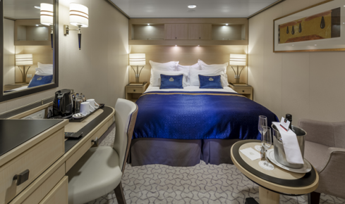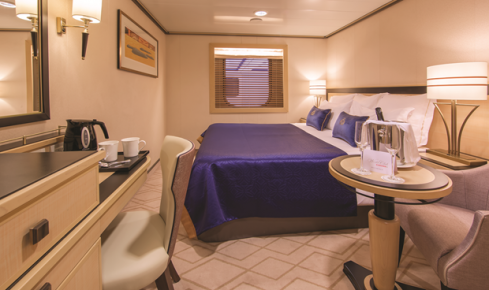 ご乗船時のウェルカム・ドリンク ■1日2回のスチュワード・サービス(ハウスキーピング) ■毎晩のターンダウン・サービス(お休み前のベッドメイキングサービス/チョコレート付き) ■エアコン ■サテライトTV(多言語の映画や音楽番組など) ■ダイレクトダイヤル式の電話 ■冷蔵庫 ■紅茶とコーヒーメーカー(湯沸かしポット) ■ヘアドライヤー ■セーフティ・ボックス(金庫) ■電源ソケット(交流220V:英国式3ピン/110V:2ピン) ■24時間のルームサービス ■ミネラルウォーター ■バスタオル・フェイスタオル ■プール用タオル ■バスローブ ■スリッパ ■シャンプー・コンディショナー ■固形石鹸 ■ボディーソープ ■ボディーローション