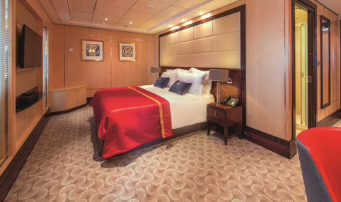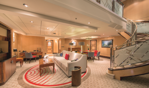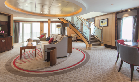 - クイーン・メリー2で最も広い、螺旋階段のあるスイートルームです。