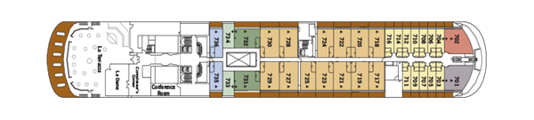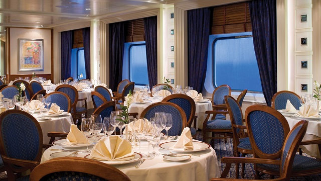 夕方以降のドレスコードは2種類に分けられ、毎日の船内新聞に記載されます。エレガントカジュアルでは、女性はズボン、ブラウス、スカート、またはカジュアルドレスを、男性はオープンネックのシャツとスラックスを着用できます。(ジャケットはオプションとなります。)フォーマルオプションでは、女性はイブニングドレスまたはカクテルドレス、男性はタキシード、ディナー ジャケット、またはネクタイ付きのダークスーツの着用をお願いいたします。。エレガントカジュアルのドレスコードに従うことも歓迎しますが、男性は屋内ではジャケットの着用が必要となります。