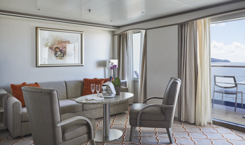各スイートの電話からは船内および陸上へ直接電話することができます。陸上への電話は衛星通信を利用するため、 つながりにくいことがございます。
