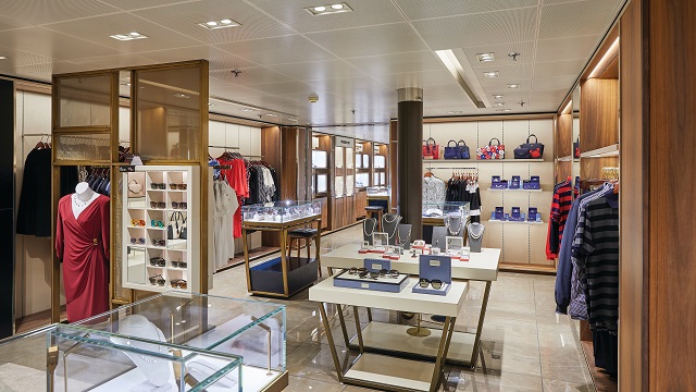 デザイナーブランドのファッション、香水、シルバーシーブランドのお土産の他、化粧品や日用雑貨もご用意しております。ご自由に店内をご覧ください。港に停泊中は税関規則により店は閉まります。営業時間は毎日の船内新聞に記載されておりますのでご確認ください。