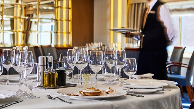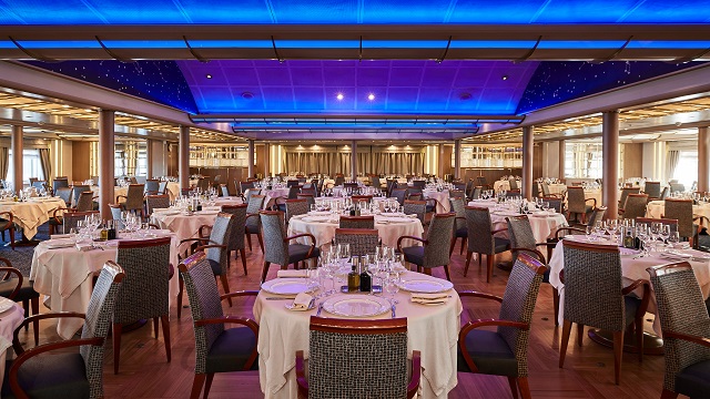 夕方以降のドレスコードは2種類に分けられ、毎日の船内新聞に記載されます。エレガントカジュアルでは、女性はズボン、ブラウス、スカート、またはカジュアルドレスを、男性はオープンネックのシャツとスラックスを着用できます。(ジャケットはオプションとなります。)フォーマルオプションでは、女性はイブニングドレスまたはカクテルドレス、男性はタキシード、ディナー ジャケット、またはネクタイ付きのダークスーツの着用をお願いいたします。。エレガントカジュアルのドレスコードに従うことも歓迎しますが、男性は屋内ではジャケットの着用が必要となります。
