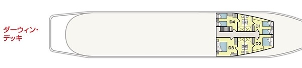 - ツインベッド(D1, D4)、ダブルベッド(D2, D3)