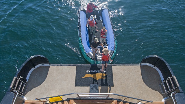 32人乗りの客船は、近代的な設備と行き届いたサービス、細部に至るまで環境に配慮された優れた探検船です。広々した宿泊施設、美味しいお食事、船内サービス、ナチュラリスト・ガイドは旅行者から高い評価を得ています。
