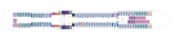 客室カテゴリーは複数ありご予算にあわせてお選びいただけます。違いは部屋の広さ、設備、デッキの階数や位置で、パブリックスペースは全カテゴリー共通でご利用いただけます。