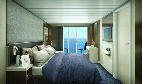- バルコニー客室ではクイーンサイズベッドにもなるベッド2台、 リビングスペースや床から天井まで届くガラスの扉の他にも、すばらしい眺めが楽しめるプライベートバルコニーが付いています。