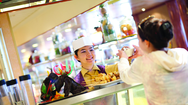 フォーマルのダイニングルームあるいはより格調高いスペシャリティレストランでは、スマートカジュアルをご着用ください。 スマートカジュアルの場合、女性の服装はパンツまたはジーンズ、ワンピース、スカート、トップスの組み合わせ。 男性の場合はジーンズまたはスラックスに襟付きのシャツ、つま先の出ない靴となります。 12歳以下のお子様は、すべてのレストランでショートパンツを着用いただけます。