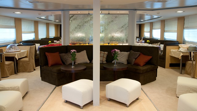 ハーモニーVは、洗練されたラインと広々としたデッキスペースで、選ばれた49名のお客様を魅了し、ヨットのあるべき姿を再定義します。 広々としたラウンジ、暖色系のインテリアでまとめられたダイニング、大きな窓から見える美しい景色、木陰、屋外バー、ラウンジは、この船の本質を表す要素のほんの一部です。