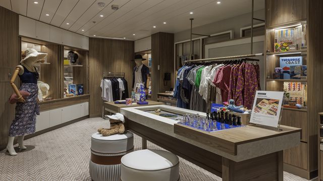 デザイナーブランドのファッション、香水、シルバーシーブランドのお土産の他、化粧品や日用雑貨もご用意しております。ご自由に店内をご覧ください。港に停泊中は税関規則により店は閉まります。営業時間は毎日の船内新聞に記載されておりますのでご確認ください。