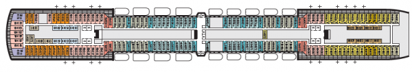 ユーロダムはホーランドアメリカラインのシグネチャークラスの2隻目として2008年に就航し、2018年に改装されました。船体の大きさにより公共スペースが広がり、メインアトリウムには現代アートの作品が展示されています。音楽をテーマにしたデザインが特徴で、1,052の客室の68%にはバルコニーがあります。船上のエンターテイメントは「ミュージックウォーク」として知られ、リンカーンステージやB.B.キングスブルースクラブ、ピアノバー「ビルボード・オンボード」などがあります。洗練された料理や優れたサービスが提供され、豊かな人生経験を持つ客層をターゲットとしています。